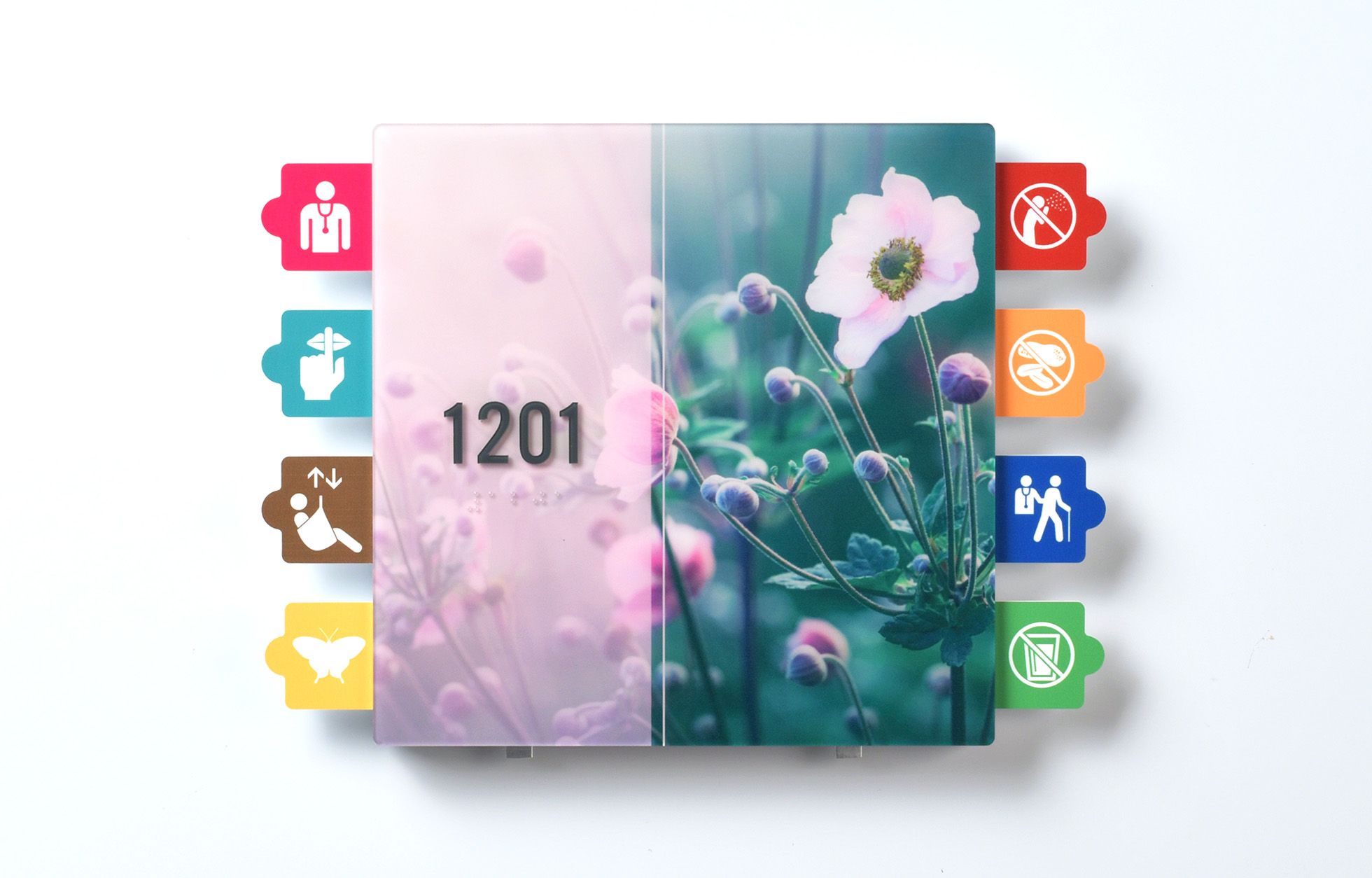A complete interior signage platform engineered to meet strict safety requirements and designed to visually support calming environments with custom visuals.